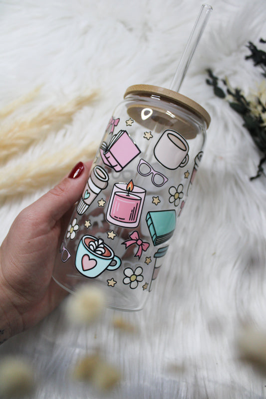 Glas mit Deckel & Strohhalm „Bücherliebe“