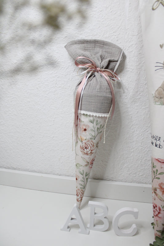 Schultüte rosa Blumen