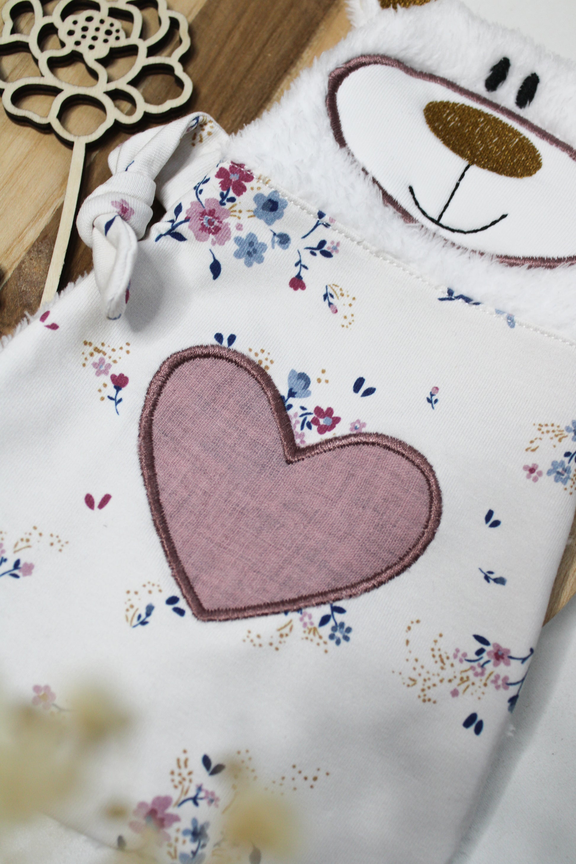 • Verspieltes Design: niedlicher Bärchenkopf mit schlichten Blumen Motiv