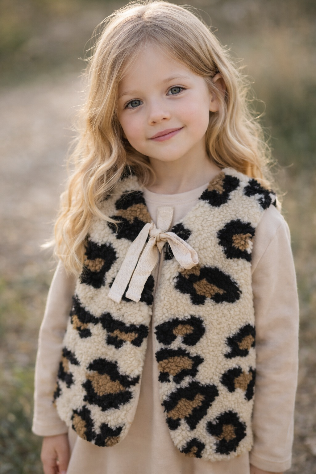 Diese süße Leo-Weste ist ein echtes Highlight im Kleiderschrank! Der weiche, flauschige Stoff sorgt für ein gemütliches Tragegefühl, während das moderne Leo-Muster jedem Outfit das gewisse Etwas verleiht. Perfekt zum Überziehen – ob im Alltag, beim Spielen oder zu besonderen Anlässen.